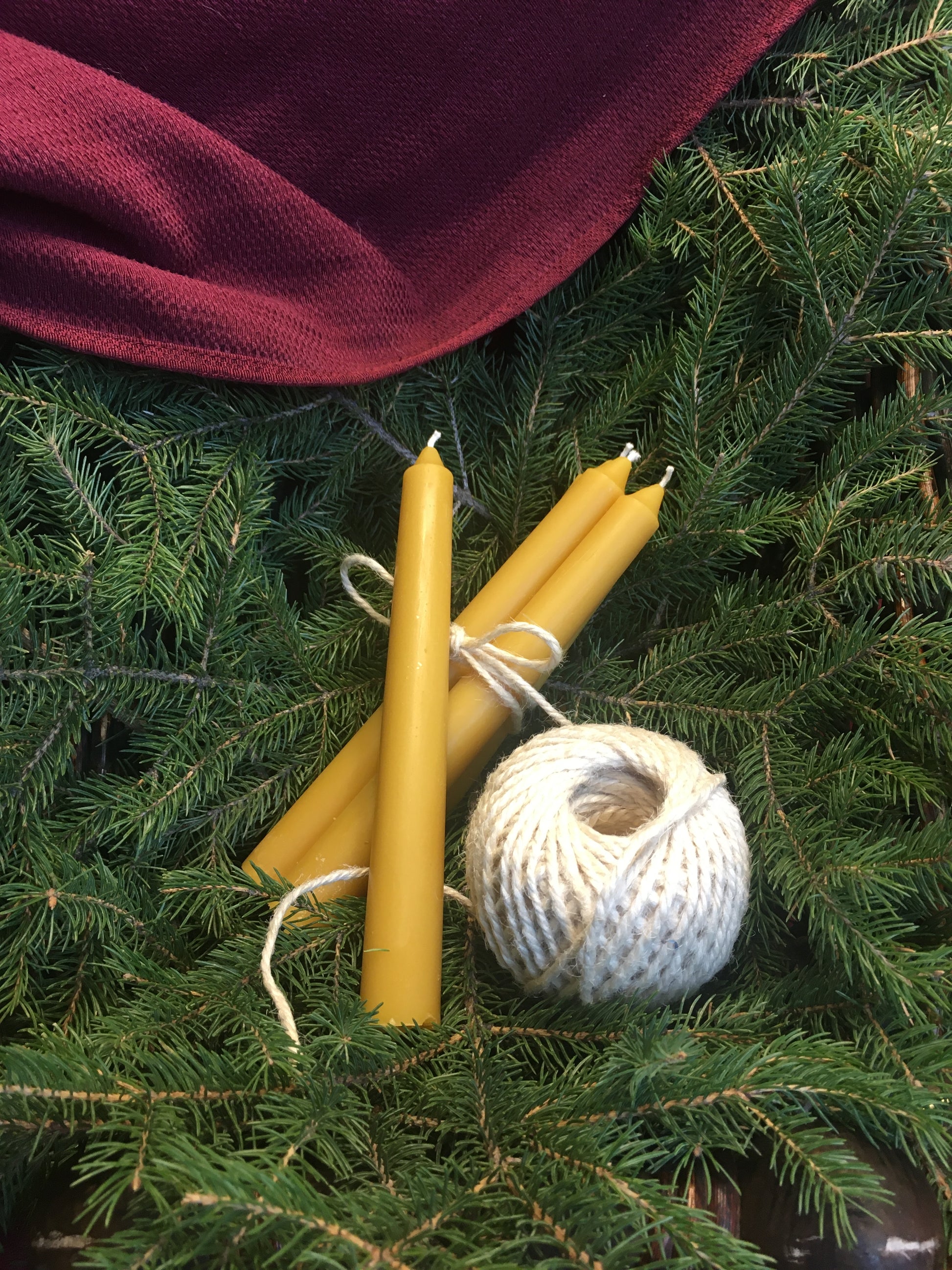 Our 7 inch taper candle is hand-poured with care using only pure, natural beeswax. It has a subtle, sweet honey scent and casts a warm, bright golden glow when lit.